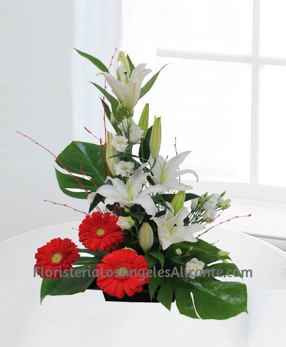 Especial, elegante es este Centro Flores Rabat. Es un centro de flores de regalo de diseño, luminoso y sobrio. Compuesto por bonitas flores como el Lilium Oriental, lisianthums, gerberas y todo ello decorado con verdes elegantes. En nuestra floristería, podemos ayudarle a hacer el regalo perfecto. Haremos llegar a su ser querido, todo el amor y alegría que quiere demostrar con este bonito centro de flores a domicilio. Sin duda, lo que quiere es hacer el mejor regalo.