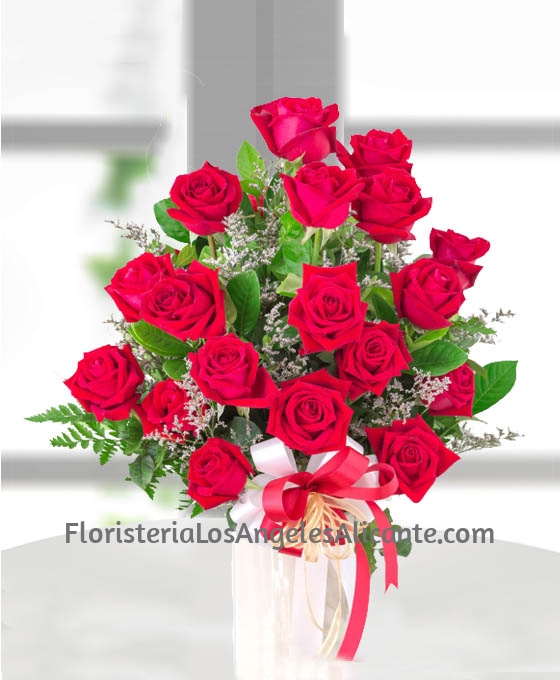 A un Ramo de Rosas, se le puede adjuntar algún complemento de los que ponemos a disposición de nuestros clientes en Floristería Los Ángeles. Puede ser; cerámica, jarrón, peluche, bombones…
